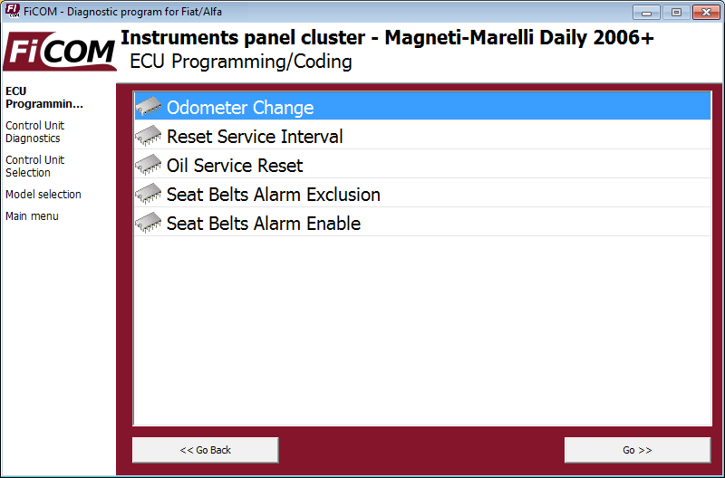 “Odometer Change” feature can be found in “ECU Programming/Coding” menu after connection to Instruments panel cluster control unit.